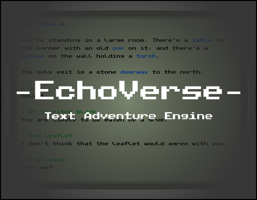 EchoVerse is an advanced text adventure engine. It is currently still in development, but when it is released you will paste in code to easily make your own text adventure games!